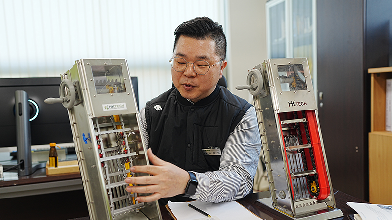 HK테크가 개발한 평면 스크린은 기존 제품들이 가지고 있던 복잡한 수중 부분의 구조적 문제와 협잡물 끼임으로 인한 체인 이탈 및 파손 문제를 근본적으로 해결했습니다. 부산의 한 환경사업소에서는 기존 제품 중 한 대가 고장 났음에도 불구하고 HK테크의 우수제품 덕분에 사업소 운영에 차질이 없었고, 5개 공공기관과의 시범 구매 사업을 성공적으로 수행하며, 제품의 우수성을 입증받았습니다.