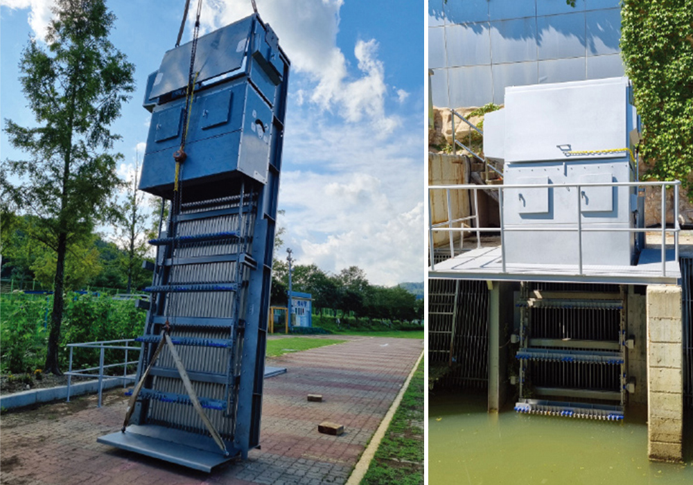 2022년, 제주에서 발생한 극한 호우 상황 중, 한 수중계 펌프장의 유입 관로가 심각한 손상을 입었습니다. 이로 인해 자갈과 돌 같은 대형 이물질이 대거 유입되는 비상사태가 발생했지만, HK테크의 우수제품은 우수한 협잡물 제거 능력을 발휘하여 대형 이물질을 원활하게 제거, 장비 파손이나 침수와 같은 2차 피해를 효과적으로 예방할 수 있었습니다.