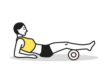 - ① 한쪽 다리의 발목 부위를 폼롤러에 올려놓습니다.